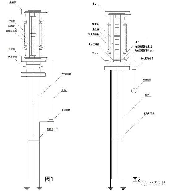 Currently, zinc oxide arresters are installed in conjunction with monitoring devices, and their structure is shown in the figure below.