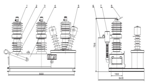 1. Upper insulation cylinder (with vacuum arc-extinguishing chamber)