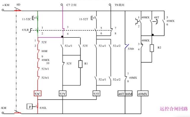 The closing bus is directly hung on the battery pack, the closing voltage is the voltage of the battery pack (generally about 240V), the use of battery discharge effect to provide a large current when closing, and the voltage is very sharp when closing.And the control bus is through the silicon chain step-down and mother connected together (generally controlled at 220V), closing will not affect the stability of the control bus voltage.Because the closing current of the electromagnetic operating mechanism is very large, the protective closing circuit is not directly through the closing coil, but through the closing contactor.The trip circuit is directly connected to the trip coil.